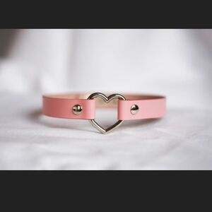 PINK Leather Heart Shaped Choker Necklace