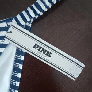 PINK Navy Blue and White Striped Print Thongs for Women Panties NEW 2025
