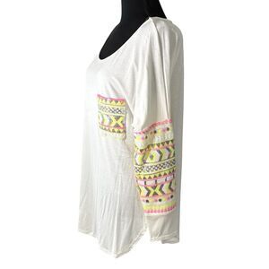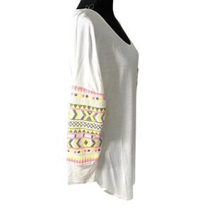Women’s M, White super soft pullover, Aztec pattern in sequins. NEW