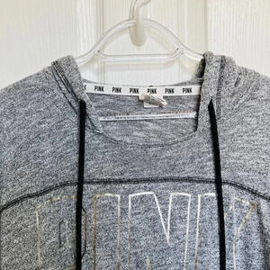 PINK Open Back Long Sleeve Raglan Gray Hoodie Size Small