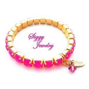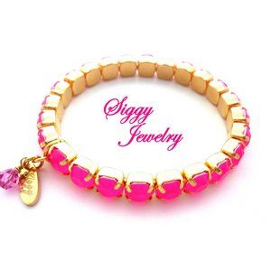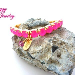Bursting with vibrant, hot neon pink, this crystal stretch bracelet is your statement piece for a bold and fashionable look. The bracelet is shown in a gold finish. Please select your favorite finish from the drop-down menu. This bracelet features 24 crystals, each measuring 8mm. The length is 7.5 inches (19cm), designed to fit comfortably around a 6.5-7 inch wrist. If you require a different size, please don't hesitate to message me.