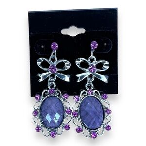PINK PURPLE DANGLE EARRINGS GLAM RETRO EVENT PROM EVENING COSTUME
