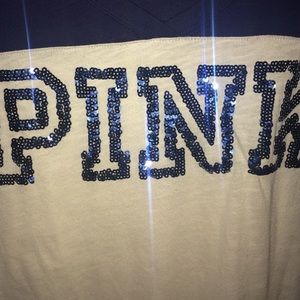 Blue & white w/ blue sequels on sleeves and letters. Worn once or twice. Xsmall fits small but im a medium and it's just a tighter fight