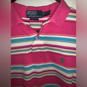 PINK Polo Ralph Lauren Mens Vintage 90s Multicolored Striped Polo Shirt M