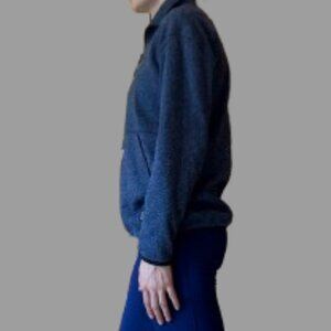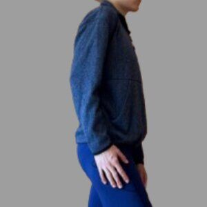 This sweater has an adjustable drawcord at the hem that allows you to cinch the bottom. It also has a large slip pocket that can be accessed from either side.