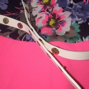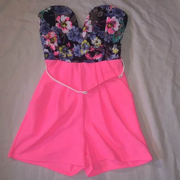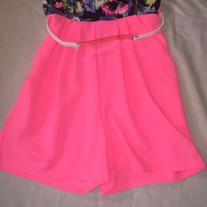🌸PINK AND 🌸FLOWERY 🌸STRAPLESS ROMPER WITH GOLD ACCENT BELT THAT ADJUSTABLE IN THE BACK WITH SNAPS (as shown in pic) 🌸new