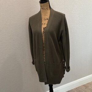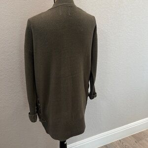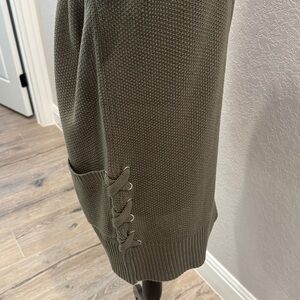 NWT cute waffle knit Smokey Olive open front cardigan with two front pockets with lace up detailing on the sides.