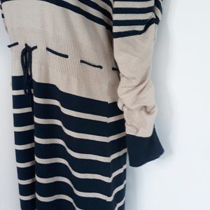 PINK ROSE • Petite Medium knit sweater dress turtleneck navy blue tan striped