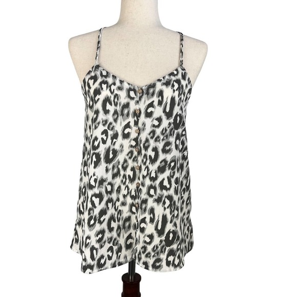 PINK ROSE SPAGHETTI STRAP V-NECK BUTTON FRONT LEOPARD CAMI TANK MULTI SMALL EUC