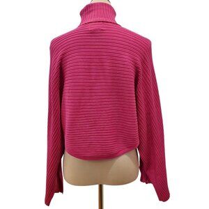 PINK ROSE SZ S Bright Pink Relaxed Oversized Ribbed Knit Cropped Turtleneck Swea