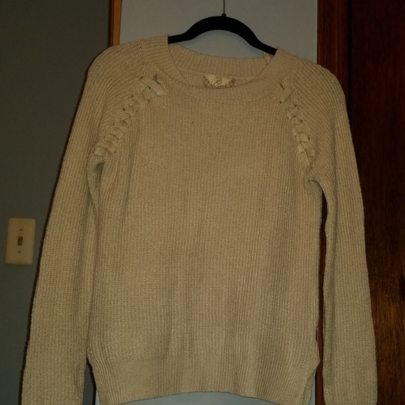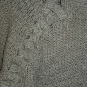 This gently worn light weight sweater is perfect for the office/weekend. It has lace up from armpit to collar, side slits for comfort. Comes from a smoke free home.