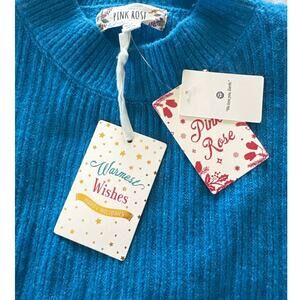 PINK ROSE Womens Sweater Small Blue Balloon Sleeve Mock Neck Spring Feminine