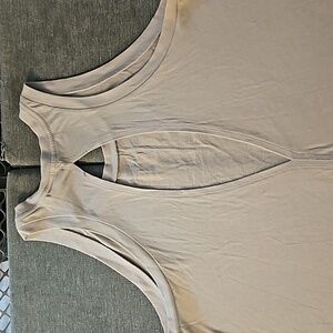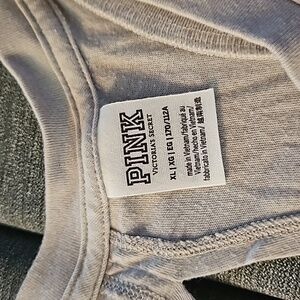 tan razor back tank top with the PINK logo in yellow on the front in xl