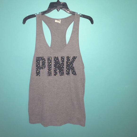 Gray PINK embellished logo tank. Perfect for summer just never wear it! Any questions feel free to comment below!