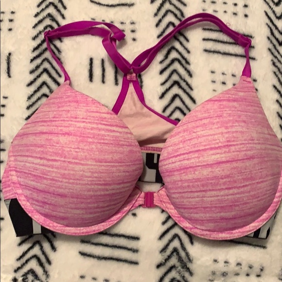 PINK sport razor back bra with band at the bottom and front closure. Adjustable straps! Gentle worn 💕