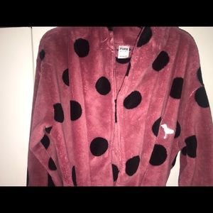 Purple polka dot robe from PINK! Super soft and only worn once! In great condition. Size XS