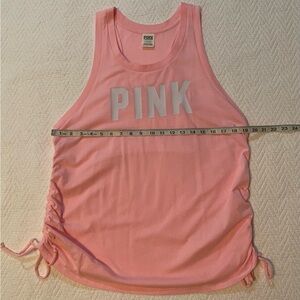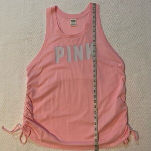 Stay comfortable in this pink sleeveless tank top with ruched sides by PINK. Perfect for casual outings or workouts.