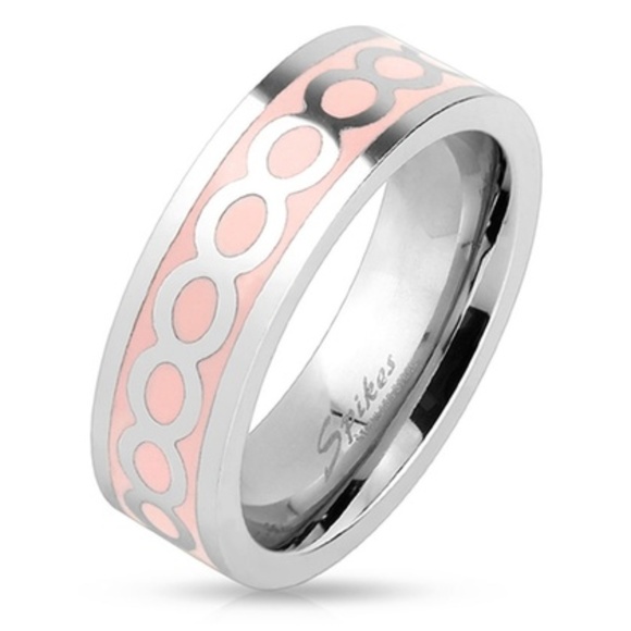 PINK & SILVER INFINITE INFINITY RING - Stainless Steel - SIZES 6 & 7