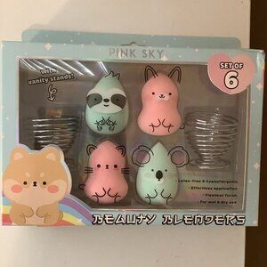PINK SKY Luna Cat Face & Eye Brush Set & Beauty Blenders Set New In Box.