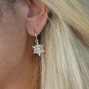 Dainty crystal shimmer snowflakes trimmed in 16k goldplate on hypoallergenic wires.