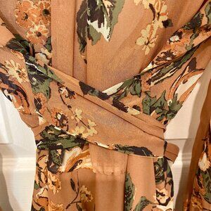 I bought this beautiful PINK + SOPHIE PINK/MAUVE FLORAL MAXI WRAP DRESS from a PRE-LOVED Hollywood sale, but HAVE NEVER WORN IT! I was told it was only worn a few times and it is in great condition. I absolutely love it, but it is too long for me to wear. It is a fitted, long, low cut, maxi, wrap dress that ties at the waist. The color is unique in a dark pink/mauve with a pink, white, and green floral pattern. It is lightweight and could work for a vacation dress, a casual daytime event, or dressed up for a nighttime event. Please view all photos and see our detailed description below: