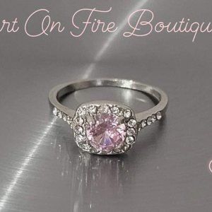 PINK STONE SILVER RING W/ CUBIC ZIRCONIA DIAMONDS!