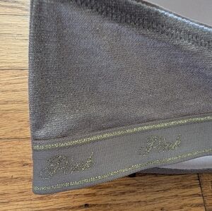 Experience comfort and style with this lightly lined wireless, taupe color bra with adjustable straps and golden thread detail.