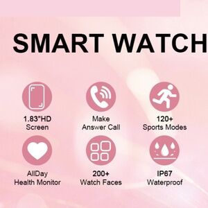 PINK Smart Watch 1.83" HD w 3 Wrist Bands Compatible Android iPhone Phones