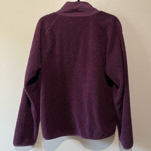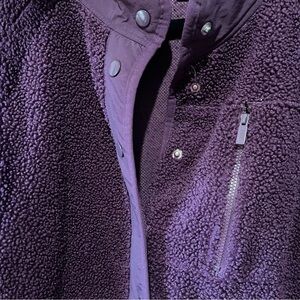PINK- Soft Purple Teddy Jacket with Buttons and Pockets Size M. Teddy material on outside but not too warm on inside. 3 zipper pockets including 1 on chest. Lightweight jacket in excellent condition great for all year. Perfect for everyday or even to throw on after a workout.