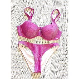 PINK Sparkling Hight Waist Bikini & Bra Set size Small Victoria's Secrets Sexy