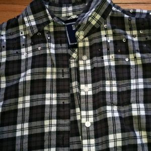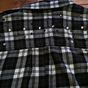 Really cute soft sparkly black and white flannel shirt. Has bedazzling on the front shoulders and the back