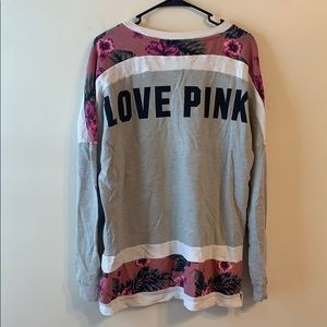 PINK Sweater. Pink floral design on shoulders and bottom hem. Only worn a handful of times