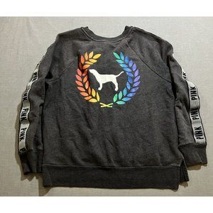 PINK Sweater Women Extra Small Gray Rainbow Long Sleeve Pullover Ladies.