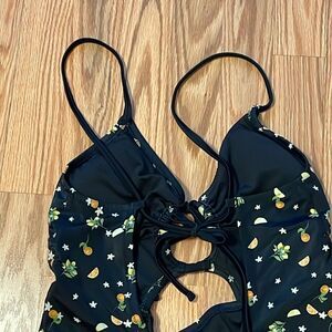PINK Swimsuit, black, oranges, lemons, blossoms, One Piece, Strappy, sexy, Large