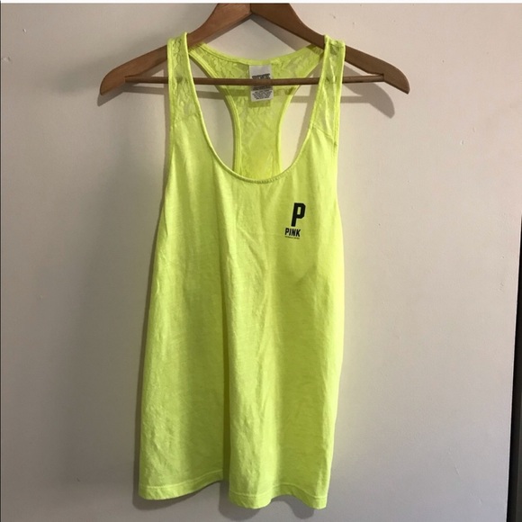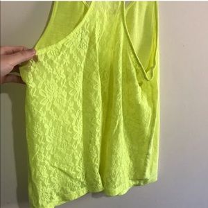Neon yellow racer back tank top from PINK Full lace back Size XS Good condition