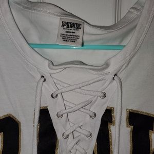Laced v-neck. Worn maybe once and just sitting in my closet ever since. Needs a good ironing!! Excellent condition.