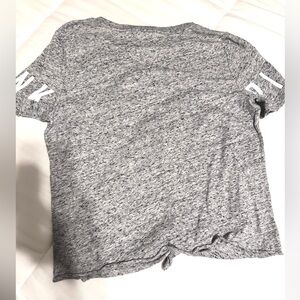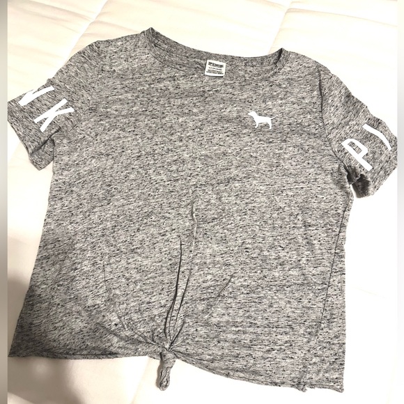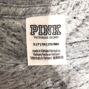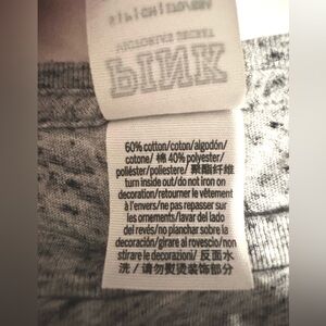 Color: gray with black, white logo on sleeves, pink dog on left chest