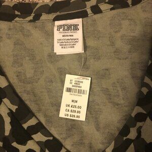 PINK Tee Shirt Women's Size Medium Green Camo Short Sleeve Print V-Neck NWT