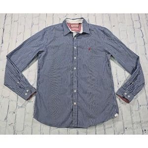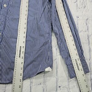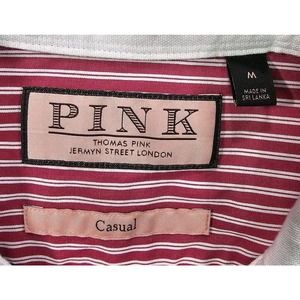 PINK Thomas Pink Dress Shirt Blue Striped Button Up Fox Embroidered MENS SIZE M