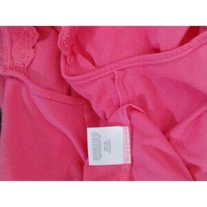 PINK Short Gathered Flutter Sleeve Crochet Trim Stretch Curved Boat Neck Size 2X. In great condition with no holes rips tears stains. Very slight washwear.