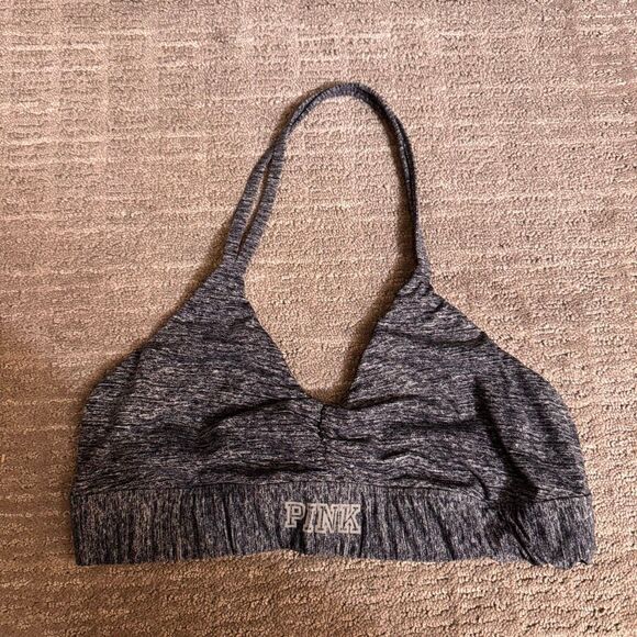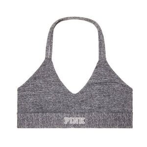 PINK Ultimate Charcoal Gray Halter Sports Bra Light Support Large
