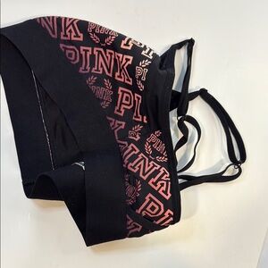 Stay comfortable and stylish with the PINK Ultimate Victoria's Secret Black Sports Bra with PINK printed in various pink colored tones. This is a pre-owned item but super nice. Perfect for workouts or casual wear, this bra offers support without an underwire - only an elastic band.