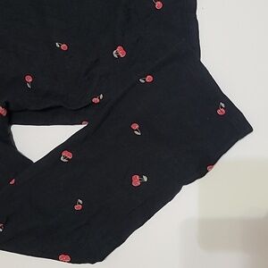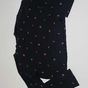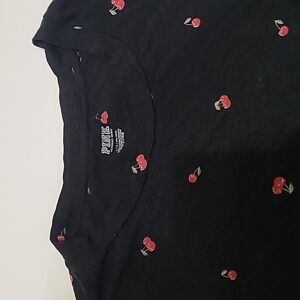 PINK VICTORIA'S SECRET Black Long Sleeve Cropped Cherry Print Top - Size Large