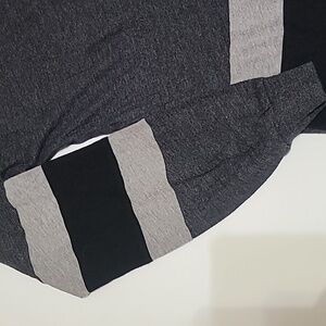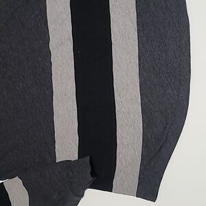 The pre-owned PINK Victoria's Secret Gray Drop Shoulder V-Neck Long Sleeve Tee Shirt in size Small is a stylish and comfortable addition to any casual wardrobe. Made from a blend of polyester and cotton, this relaxed fit shirt features a striped pattern in a cozy gray color. Perfect for travel or everyday wear, this pullover shirt is machine washable and lightweight, making it ideal for all seasons. With a V-neckline and casual sleeves, this Victoria's Secret tee is a versatile basic piece that can be worn in winter, fall, or spring.