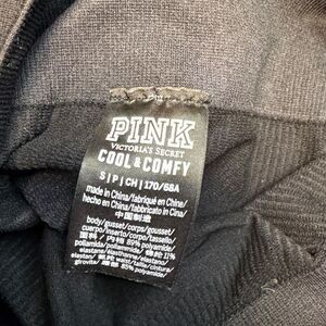 Stylish PINK Victoria’s Secret Cool & Comfy ombre leggings that fade from black to light gray, featuring lace-up sides for a trendy, edgy look. Made from a soft, stretchy nylon blend for a flattering fit and breathable comfort — perfect for lounging, casual wear, or light workouts.
