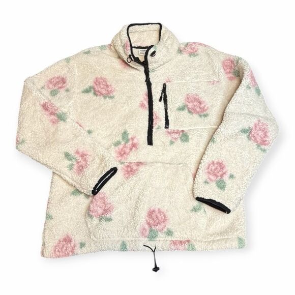PINK Victoria’s Secret Women’s Cream Pink Floral Sherpa Half Zip Pullover Size Medium.