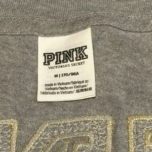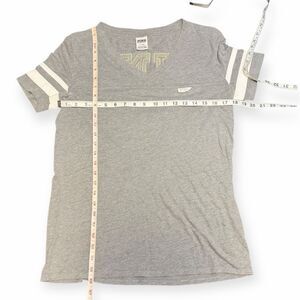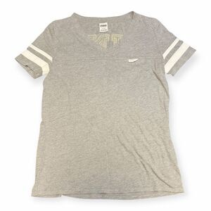 PINK VICTORIA’S SECRET Women’s Gray White Stripe Sleeve V-Neck Tee Size Medium