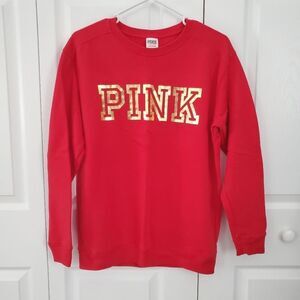PINK VICTORIA'S SECRET Red Crewneck Sweatshirt with Gold Spellout Logo