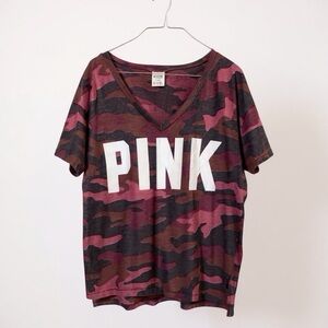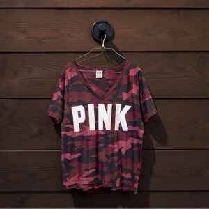 Victoria's Secret PINK V-Neck Camo T-Shirt - Red & Black Camouflage Tee