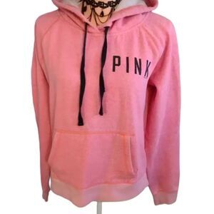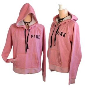 PINK VS 2012 Pink Black Logo Fleece Thrashed Hooded Pullover Large